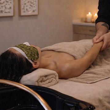 Masaje manual completo: cuello, hombros, brazos y manos.